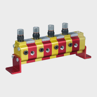 4 fach Zahnrad-Mengenteiler mit Endlagenausgleichs- und Nachsaugventilen